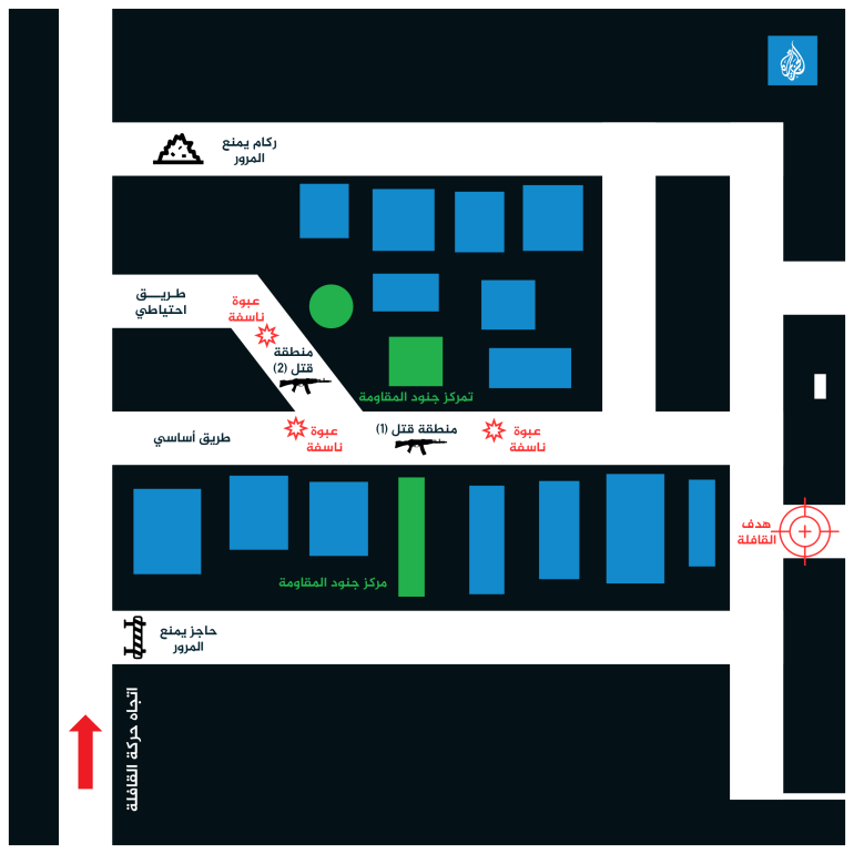 لم نقرأ هذه التفاصيل، ولم نسمعها من “أبي عبيدة”، المتحدث باسم كتائب القسام، لكننا شاهدناها رأي العين من خلال أحد الفيديوهات التي بثتها الكتائب عبر قناتها على تلغرام في العاشر من يناير/كانون الثاني 2024. يظهر الفيديو كل التفاصيل المذكورة وأكثر، من خلال كاميرا ثبتتها المقاومة في أحد الزوايا العليا للمكان، والتي كانت تسجل تلك اللحظات بالبث الحي والمباشر، وتنقلها لأحد القادة الميدانيين للمقاومة، بينما يجلس في مكان آخر، مراقبًا هدفه الثمين، وموجهًا أوامره لمجموعة أخرى بتفجير الكمين في ساعة الصفر.