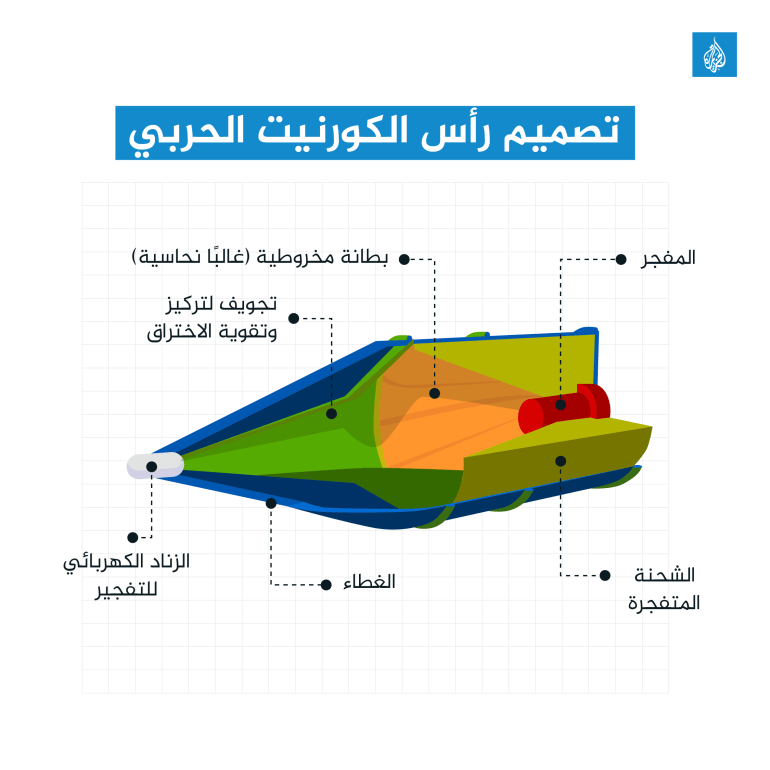 كان هذا هو الكورنيت، الصاروخ الروسيّ الموجه والمخصص للاستخدام ضد دبابات القتال الرئيسية الأثقل في ترسانة الحرب البرية والمزودة بدروع تفاعلية متفجرة، يستخدم كورنيت صواريخ شديدة الانفجار مضادة للدبابات تعمل عبر ما يسمى “تأثير مونرو” حيث يكون للعبوة المتفجرة قطع مجوفة أو فارغة في مقدمتها، مما يؤدي إلى تركيز طاقة الانفجار في اتجاه محدد، الأمر الذي يزيد من اختراق المادة المتفجرة للهدف، عن طريق إنشاء نفث عالي السرعة من المادة، وبالتبعية يكون فعالًا في حالة الدروع الكثيفة.