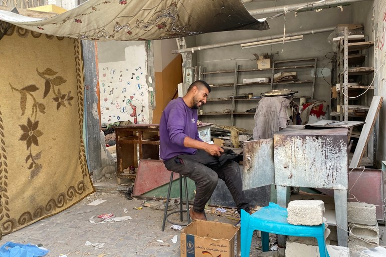 ويقول للجزيرة نت إنه يساعده في توفير الاحتياجات الأساسية لأسرته المكونة من 4 أفراد، ويشاركه العمل شقيق زوجته عمر المصري المقيم لديه مع عائلته (10 أفراد) بعدما وجدوا منزلهم مدمرا في منطقة “جورة العقاد” بالمدينة.