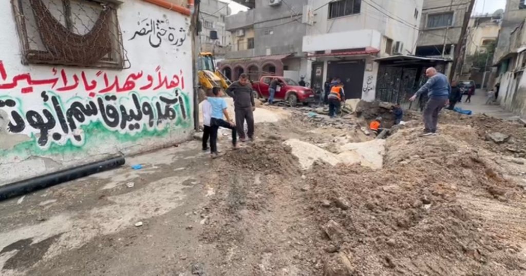 يقول “لا نستطيع ترك أهلنا دون ماء، اليوم أعود إلى إصلاح خط المياه الذي كنت أصلحه ليلة أمس، في كل اقتحام للمخيم تقوم الجرافات الإسرائيلية بتجريف خطوط المياه في كل الحارات والشوارع”.