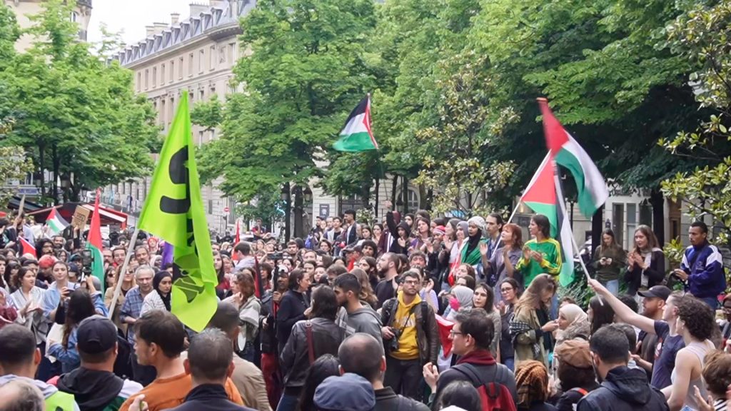 ودعا الطلاب المحتشدون إلى التظاهر تضامنا مع الشعب الفلسطيني، رافعين الأعلام واللافتات المطالبة بوقف إطلاق النار وتحرير فلسطين من الاحتلال الإسرائيلي، ومرتدين الكوفية الفلسطينية ومرددين شعارات “طلاب باريس مع غزة” و”النكبة لم تنتهِ قط”.