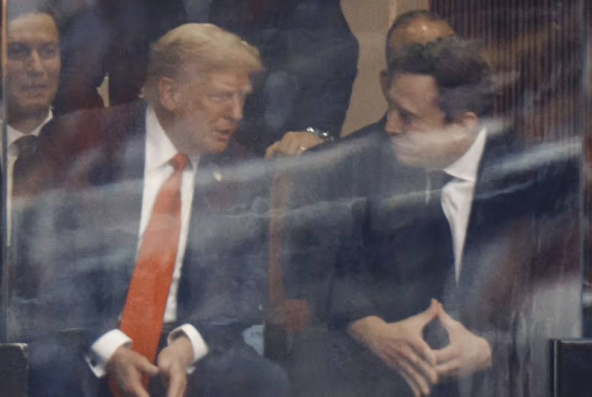 وجلس ماسك بجانب ترمب في الصندوق الخاص أثناء خطاب وزير الدفاع بيت هيغسيث، إذ تبادلا الحديث بحماس مع دانا وايت، الرئيس التنفيذي لشركة القتال الحر.
