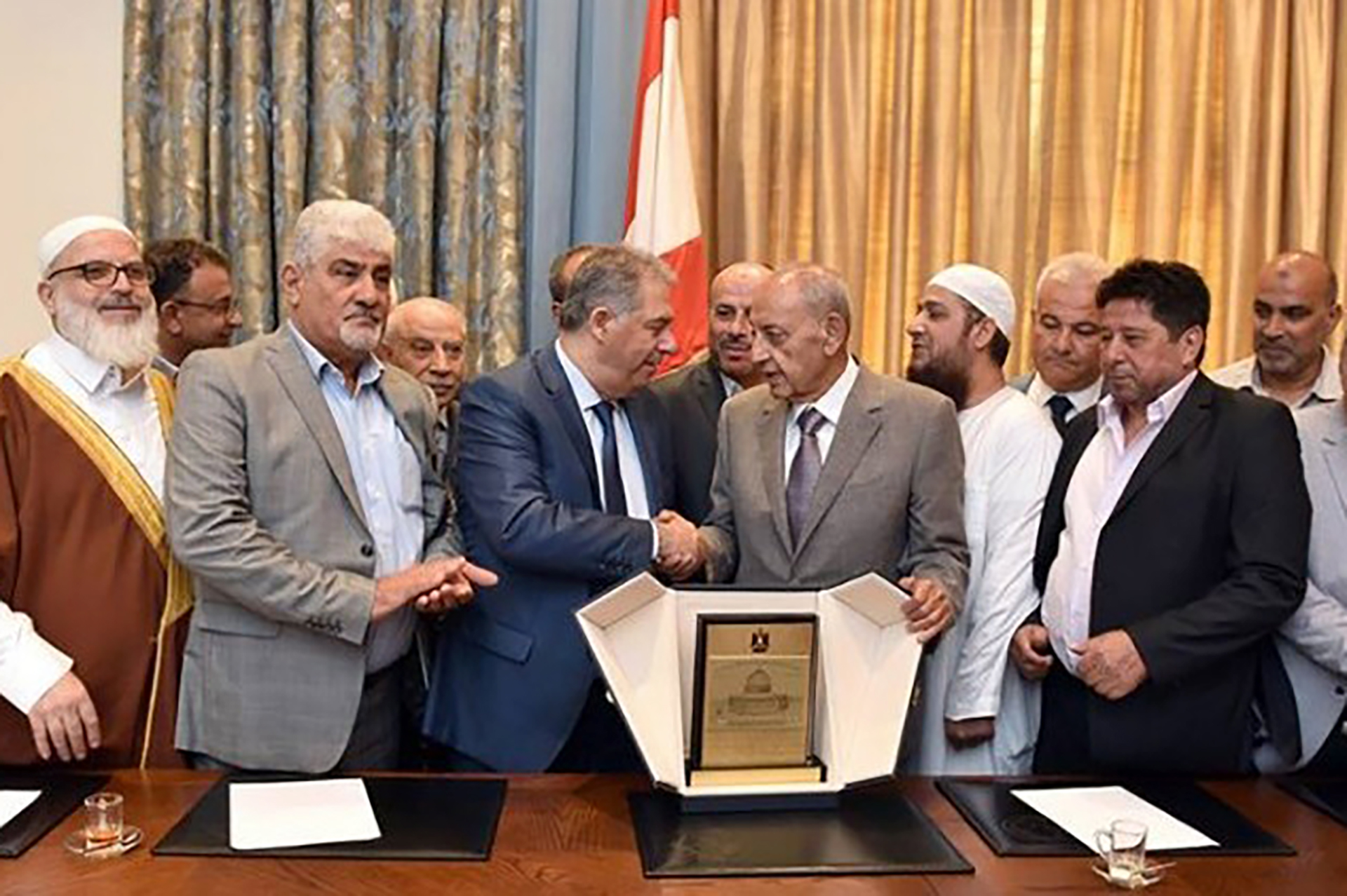 وتُرجمت أولى خطوات هذه المساعي الحثيثة بعقد اجتماع بين مسؤول الملف الفلسطيني في حركة أمل محمد الجباوي، المكلف من الرئيس بري بمتابعة القضية، مع السفير الفلسطيني في لبنان أشرف دبور، وممثلي فصائل منظمة التحرير الفلسطينية بما فيها حركة فتح، على أن يلتقي أيضا ممثلي تحالف القوى الفلسطينية بما فيها حركتا المقاومة الإسلامية (حماس) والجهاد الإسلامي، للغاية ذاتها.