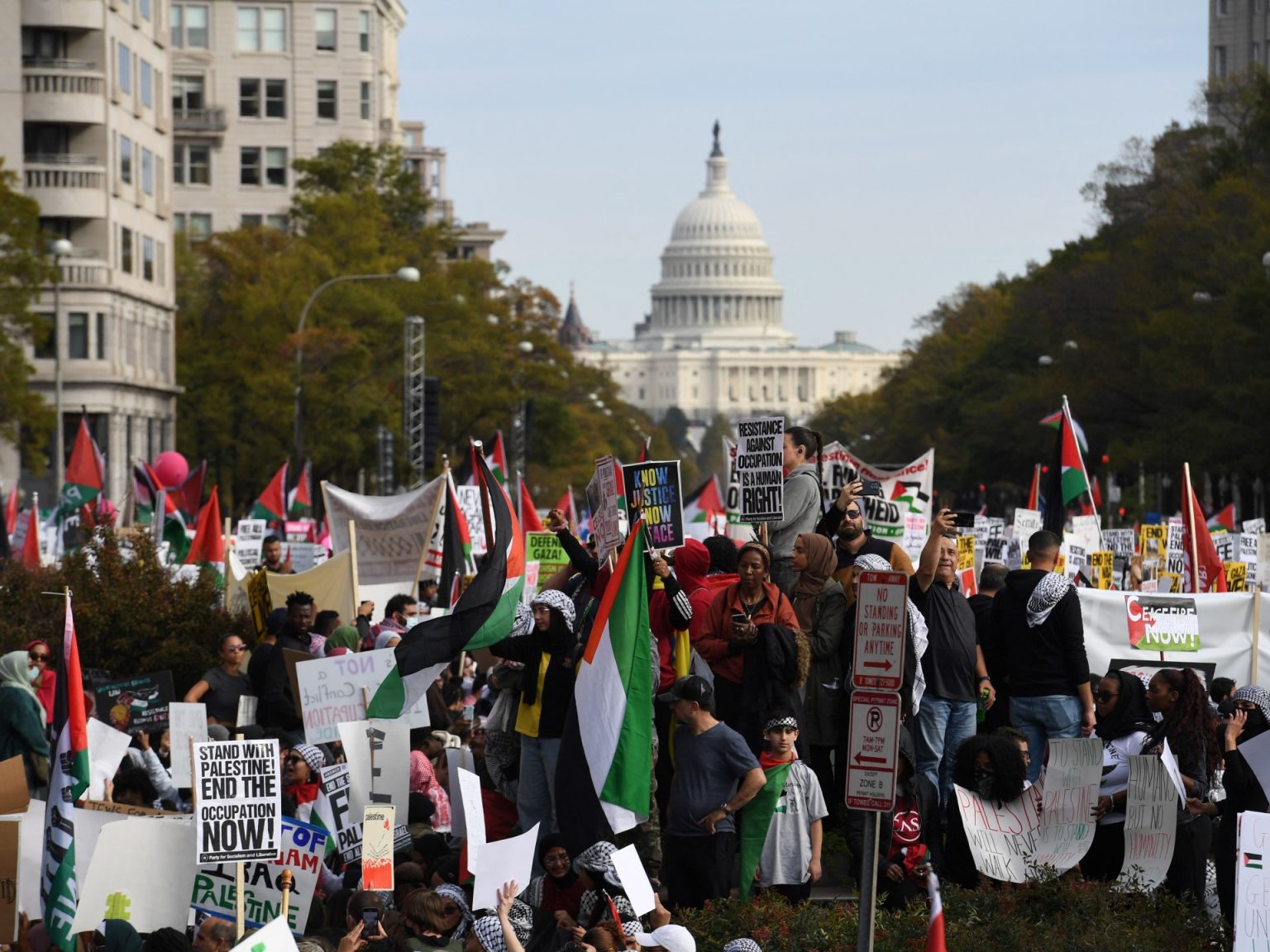 بل تتكاثر المظاهرات أمام المباني العامة، كمباني الكابيتول في الولايات والمطارات، بل وحتى أمام منازل المسؤولين والمنتخبين، مثل منازل وزير الدفاع لويد أوستن، ونانسي بيلوسي رئيسة مجلس النواب الديمقراطية السابقة التي تقدمت بشكوى، وأمام مقرات شركات النفط مثل شيفرون التي تدير حقل غاز قبالة سواحل إسرائيل.