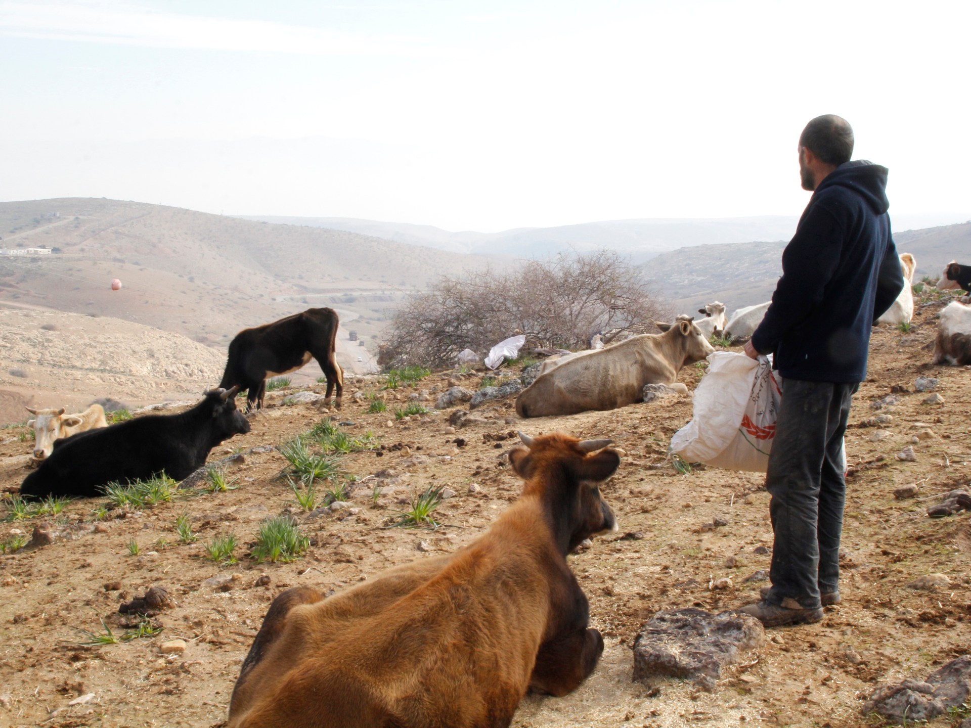 الأغوار الشمالية- رغم الموسم المطري الغزير والعشب الممتد على مساحات شاسعة من الأرض، يقف الفلسطيني قدري دراغمة في الأغوار الشمالية عاجزا عن رعي أبقاره، ويضطر لحبسها داخل حظائرها تحت ضغوط جيش الاحتلال والمستوطنين وإجراءاتهم في مصادرتها وسرقتها.