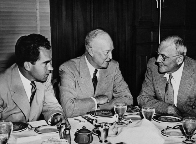 كان الرئيس آيزنهاور يشعر بالكثير من الذنب بسبب القصف الذرّي على هيروشيما وناغازاكي اليابانيتين عام 1945، وخلال أحد الاجتماعات قال -وفق محاضر الجلسات- للأدميرال رادفورد والجنرال توينينغ:
