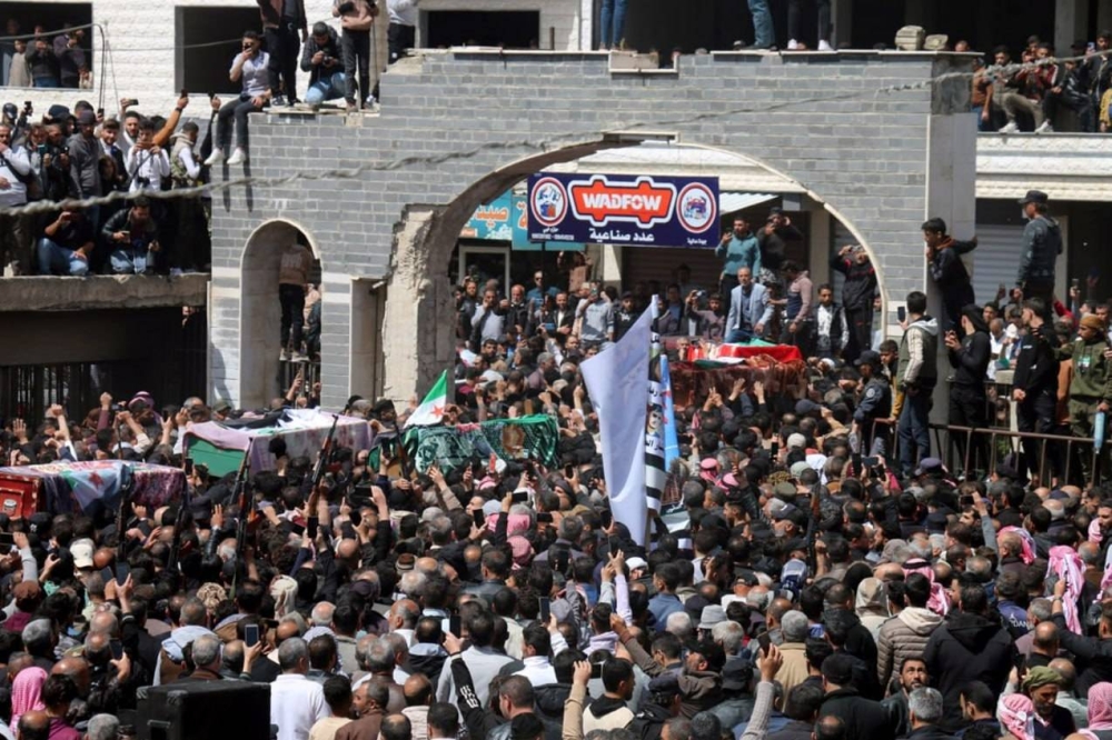 شيع السوريون اليوم (الخميس) قتلى العدوان الإسرائيلي على منطقة حرش سد الجبيلية الواقع بين مدينة نوى وبلدة تسيل غرب درعا.