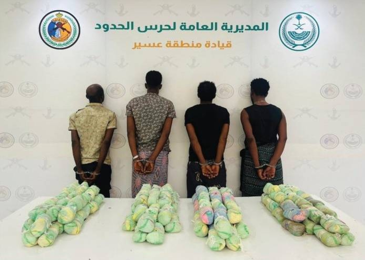 قبضت الدوريات البرية لحرس الحدود في قطاع الربوعة بمنطقة عسير على (4) مخالفين لنظام أمن الحدود من الجنسية الإثيوبية، لتهريبهم (80) كيلوغراماً من نبات القات المخدر، واستكملت الإجراءات النظامية الأولية بحقهم، وسُلّموا والمضبوطات لجهة الاختصاص.