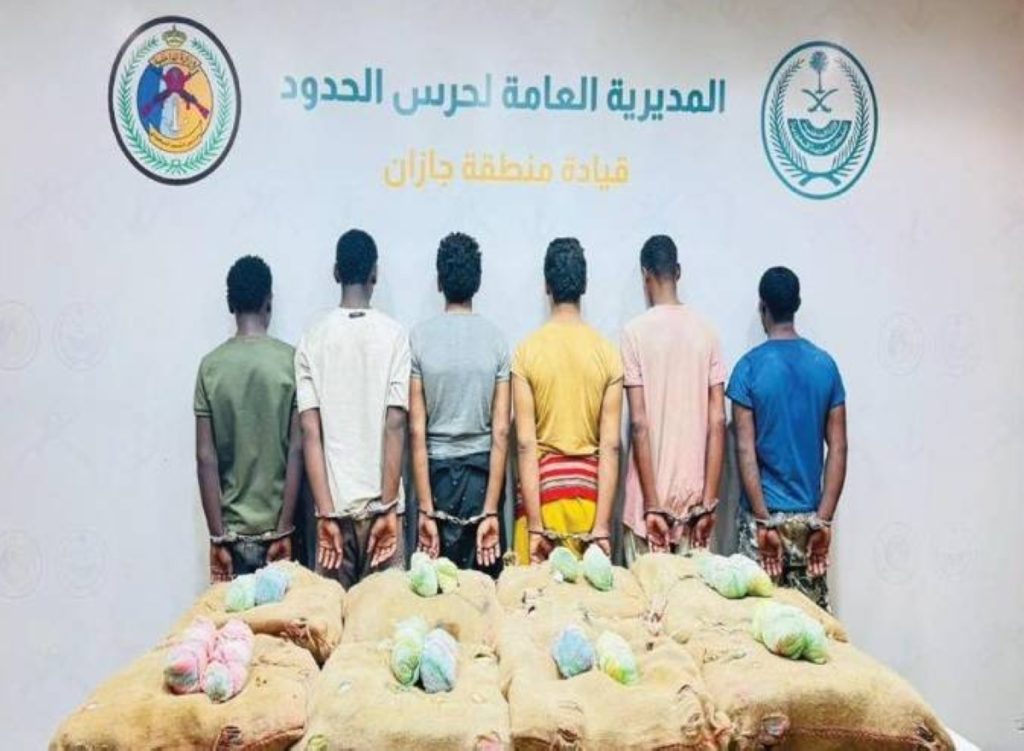 قبضت الدوريات البرية لحرس الحدود في قطاع الدائر بمنطقة جازان على (6) مخالفين لنظام أمن الحدود من الجنسيتين اليمنية والإثيوبية، لتهريبهم (200) كيلوجرام من نبات القات المخدر، واستكملت الإجراءات النظامية الأولية بحقهم، وسُلّموا والمضبوطات لجهة الاختصاص.