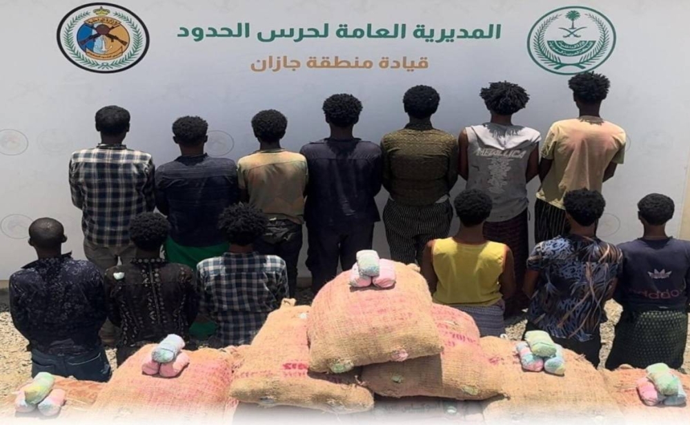 قبضت الدوريات البرية لحرس الحدود في قطاع الدائر بمنطقة جازان على (13) مخالفًا لنظام أمن الحدود من الجنسية الإثيوبية، لتهريبهم (195) كيلوغرامًا من نبات القات المخدر، وجرى استكمال الإجراءات النظامية الأولية بحقهم، وتسليمهم والمضبوطات لجهة الاختصاص.