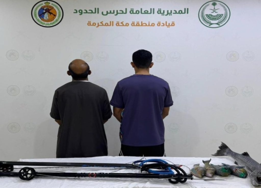 ضبطت الدوريات الساحلية لحرس الحدود في جدة بمنطقة مكة المكرمة مواطنين مخالفين للائحة الأمن والسلامة لمزاولي الأنشطة البحرية في المناطق البحرية للمملكة العربية السعودية، وذلك لممارستهما الصيد دون تصريح، وبحوزتهما أسماك مصيدة، وتم اتخاذ الإجراءات النظامية بحقهما بالتنسيق مع الجهات المختصة.