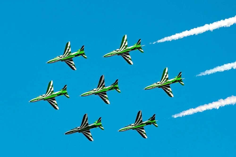 انطلقت العروض الجوية لفريق القوات الجوية الملكية السعودية «الصقور السعودية»، ضمن فعاليات يوم التأسيس التي تنظمها الهيئة الملكية بالجبيل ممثلة في إدارة الخدمات الاجتماعية، وذلك على شاطئ الفناتير بمدينة الجبيل الصناعية. وشهدت الفعاليات، التي تستمر 3 أيام، تقديم العديد من المهارات الثنائية والمناورات، إضافة إلى حركات استعراضية.
