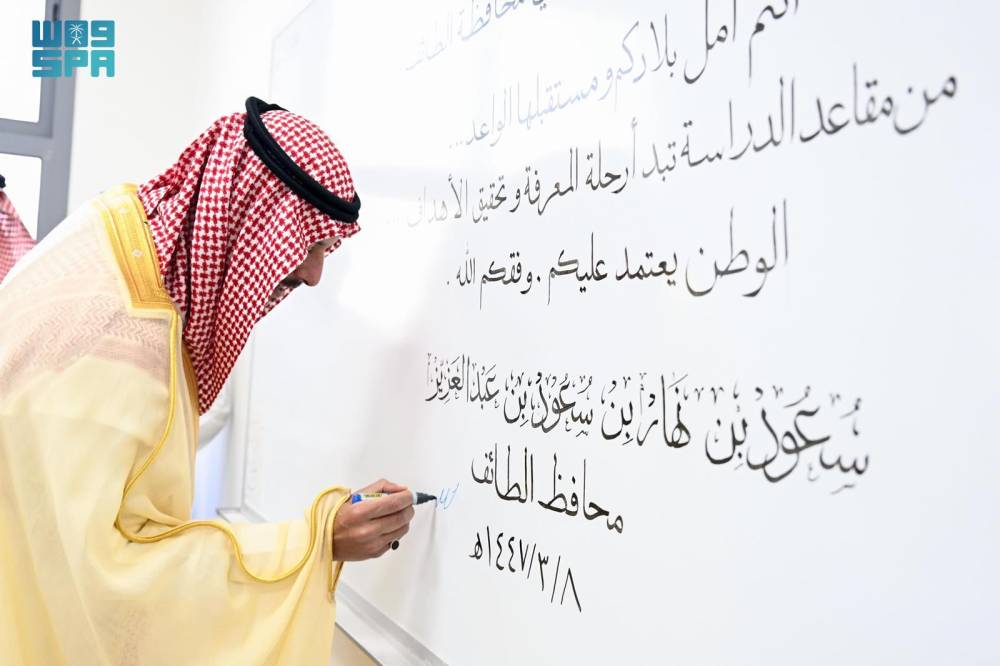 شهد محافظ الطائف الأمير سعود بن نهار بن سعود بن عبدالعزيز، اليوم، انطلاقة العام الدراسي الجديد بمقر مجمع القلت التعليمي.