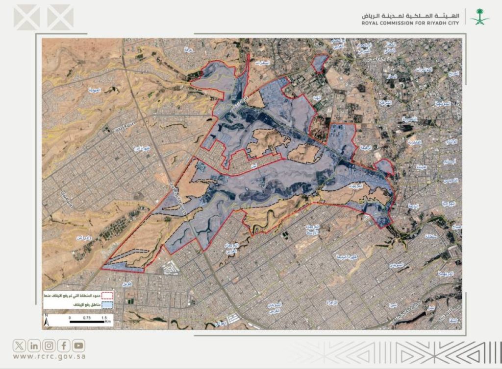 أعلنت الهيئة الملكية لمدينة الرياض، رفع الإيقاف عن أراضٍ واقعة في غرب مدينة الرياض، بمساحة إجمالية تبلغ 33.24كم² بما يشمل تمكين ملاك الأراضي والعقارات من التصرف بالبيع والشراء وأعمال التخطيط والتقسيم والتجزئة وإصدار رخص البناء، على أن يُطبق الكود العمراني لمنطقة وادي حنيفة وروافده في المنطقة التي رُفع الإيقاف عنها.