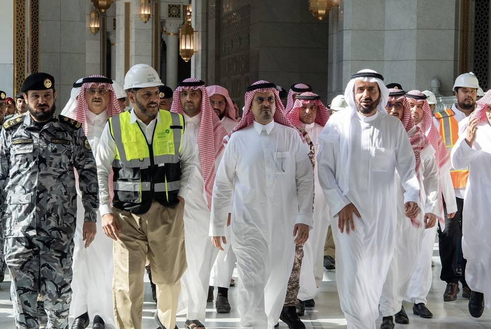 ورافقه في الزيارة الميدانية، وزير الحج والعمرة رئيس مجلس إدارة الهيئة العامة للعناية بشؤون المسجد الحرام والمسجد النبوي الشريف الدكتور توفيق الربيعة.