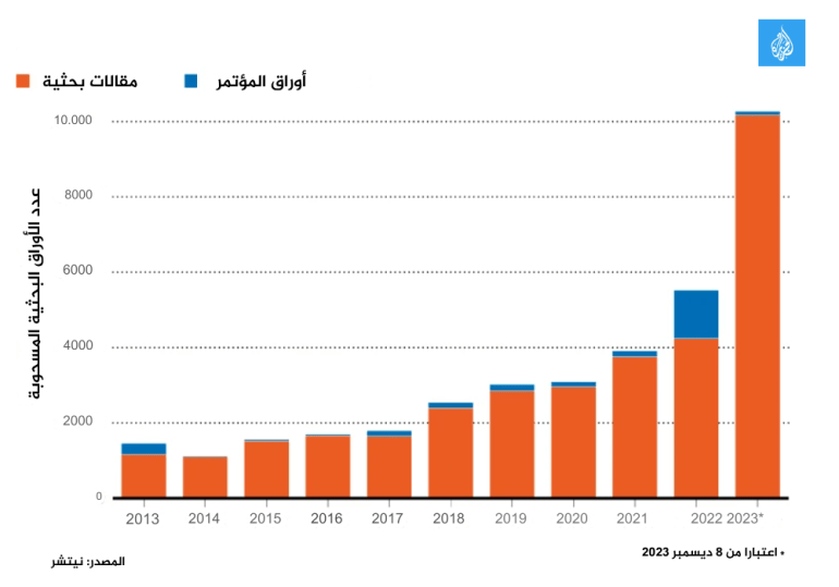 وإذا كانت مثل هذه “الأخطاء الجسيمة” تلتصق بدوريات رصينة وعلماء على قدر الفائزين بجائزة نوبل، فإن “ما خفي أعظم”، إذ يشير تقرير نشره موقع دورية “نيتشر” إلى تجاوز عدد عمليات سحب المقالات البحثية إلى 10 آلاف مقالة بحثية في عام 2023، بما يحطم الأرقام القياسية السنوية، حيث يكافح الناشرون لتنظيف عدد كبير من الأوراق البحثية المزيفة.