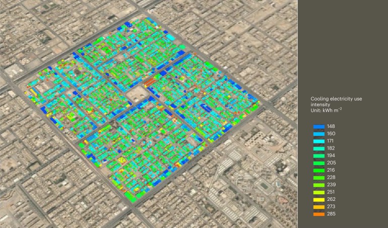 وفي الدراسة الجديدة أجرى الباحثون عمليات محاكاة واسعة النطاق لتخفيف الحرارة في منطقة المصيف بالرياض، شملت تقييم أداء الطاقة في 3323 مبنى حضريا. وتضمنت المحاكاة تجربة 8 سيناريوهات مختلفة للتبريد بهدف تحديد الإستراتيجيات المثلى لخفض درجات الحرارة في المدينة وتقليل احتياجات الطاقة.