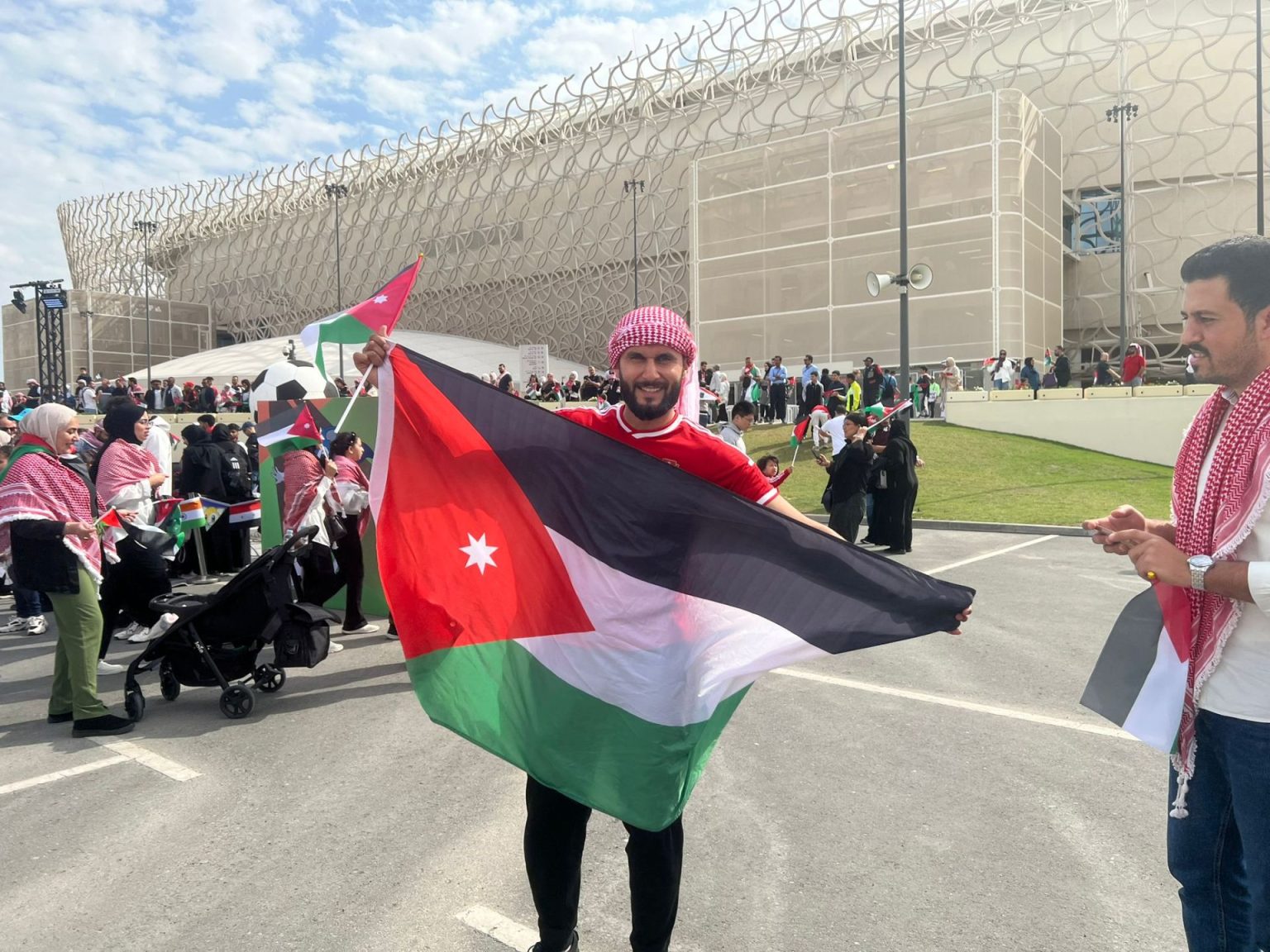 2 فبراير/شباط الجاري، لم يكن يوما عاديا للجماهير الأردنية في الدوحة، فبعد أن كتب المنتخب الأردني تاريخا جديدا لكرة القدم الأردنية، بإنجاز استثنائي ووصوله للمربع الذهبي في بطولة كأس آسيا، للمرة الأولى بتاريخه بعد الفوز على طاجيكستان، جالت الجماهير الأردنية شوارع الدوحة، وصدى هُتافاتهم ارتد في سوق واقف ومدينة لوسيل والحي الثقافي (كتارا)، ومحطات مترو الدوحة وأنفاقه.