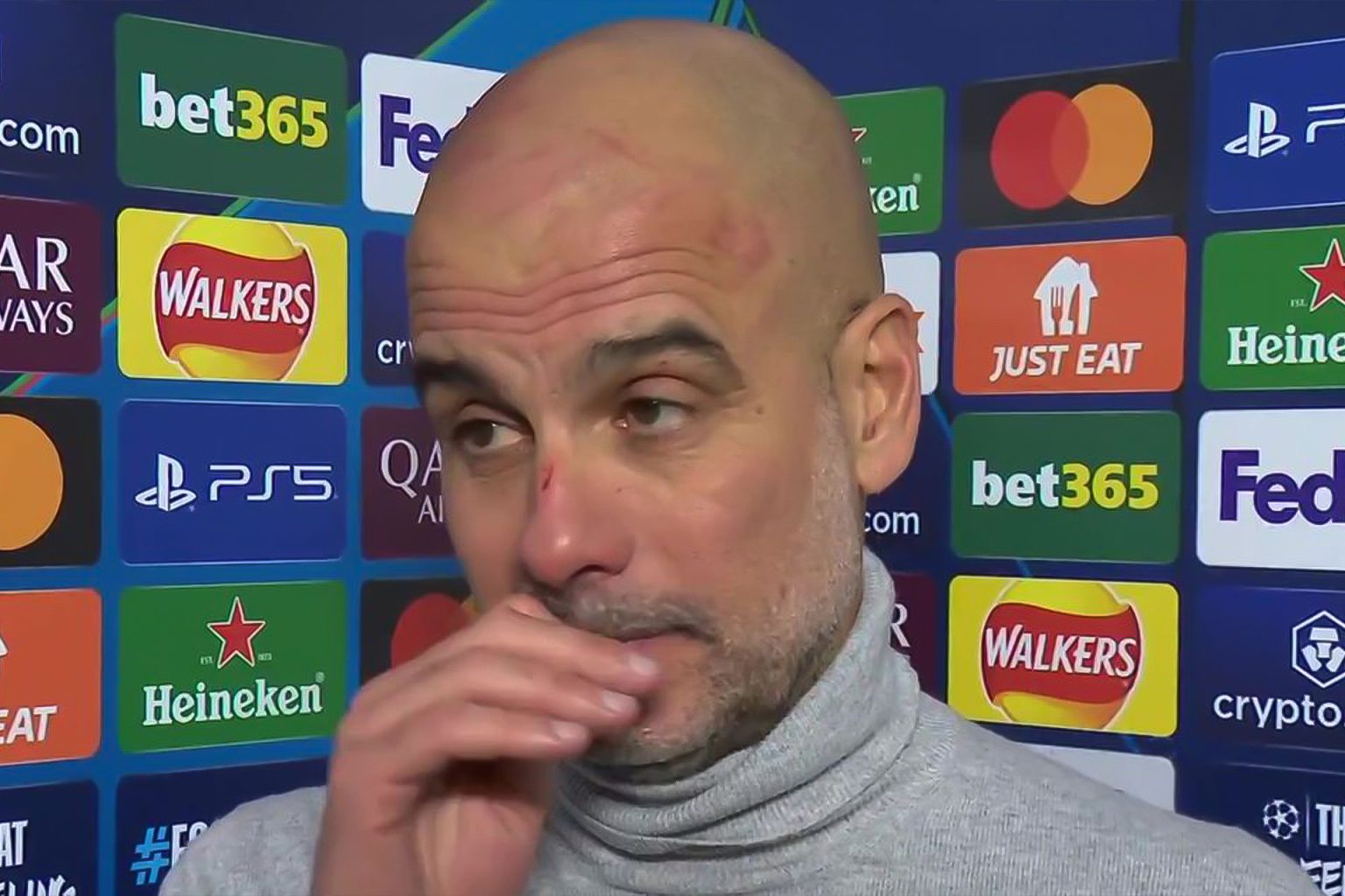 وأضافت “أظهر غوارديولا علامات العجز والضيق أثناء حديثه عن الجروح في وجهه”.
