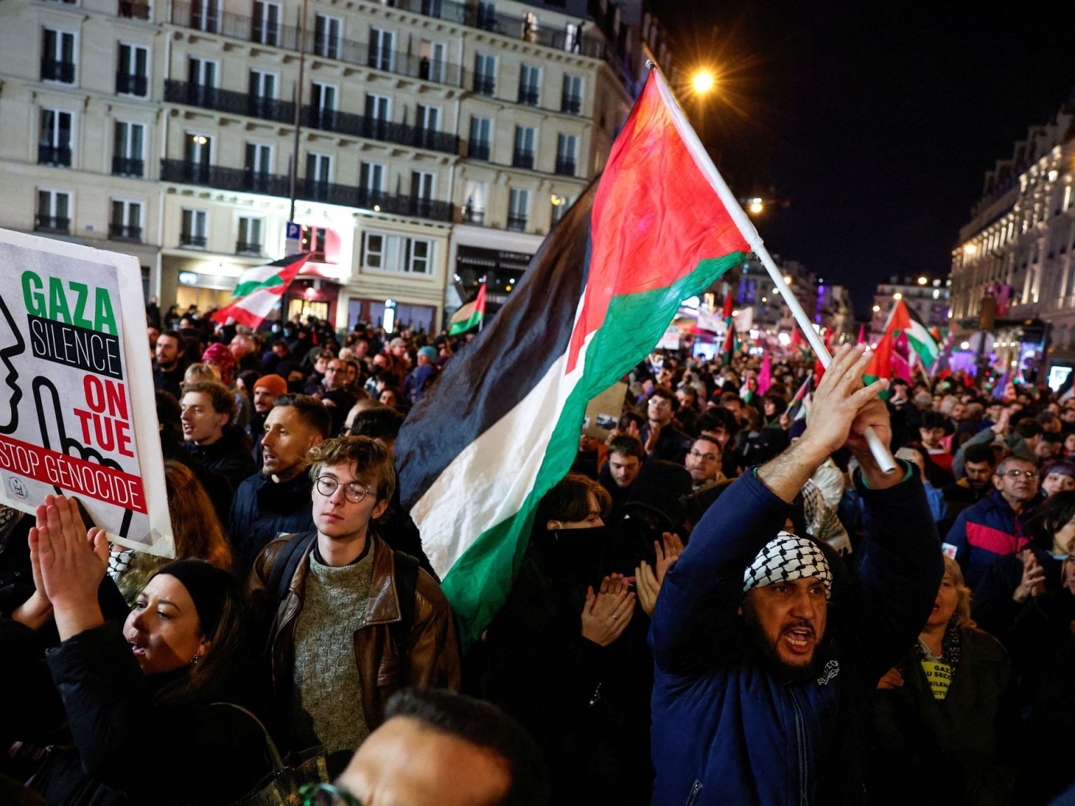 وفي عمود نُشر يوم الخميس في أعمدة صحيفة “لومانيتي” (L’Humanité)، دعا العديد من النواب اليساريين، وممثلي حركة “لافرانس أنسوميز” (La France insoumise) ونشطاء البيئة على وجه الخصوص، بالإضافة إلى شخصيات مثل جان لوك ميلينشون زعيم حزب “فرنسا الأبية” ومغني الراب “ميدين” (Médine)، “أي شخص” يشعر بالقلق إزاء المآسي في الشرق الأوسط للتلويح بالأعلام الفلسطينية في جميع الملاعب في فرنسا نهاية هذا الأسبوع.