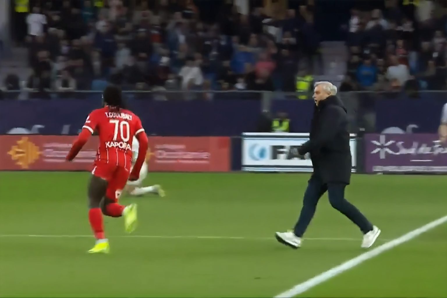 ومع وصول مباراة مونبيليه وضيفه ليل -التي أقيمت على ملعب “دو لا موسون”- إلى الوقت بدل الضائع حاول تانغوي اللحاق بالكرة بجانب خط التماس بالقرب من منتصف الملعب، لكنه فشل في ذلك.