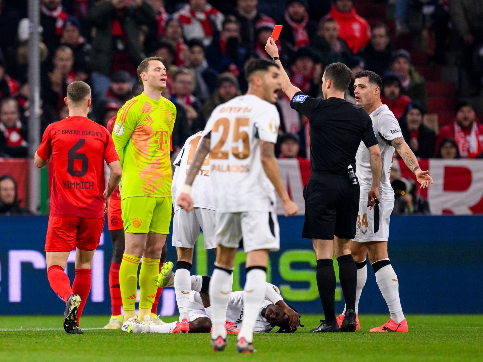 عاش مانويل نوير حارس مرمى بايرن ميونخ ليلة قاسية بعد تعرضه للطرد خلال مباراة فريقه ضد باير ليفركوزن في كأس ألمانيا التي أقيمت أمس على ملعب “أليانز أرينا”.