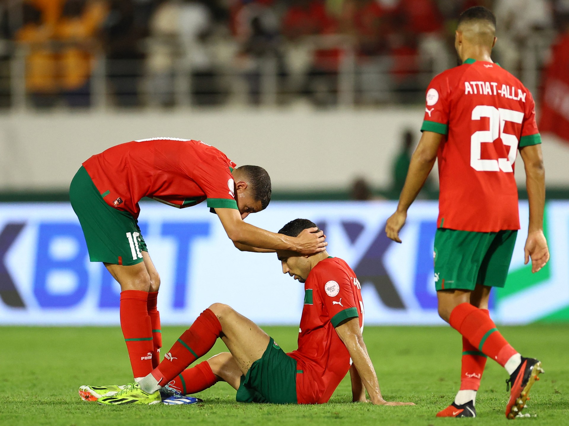 وخسر المغرب 2-صفر من جنوب أفريقيا -الذي لم يكن مرشحا للوصول بعيدا في البطولة- وأهدر أشرف حكيمي مدافع باريس سان جيرمان ركلة جزاء ليودع الفريق البطولة من الدور ثمن النهائي في مفاجأة مدوية.
