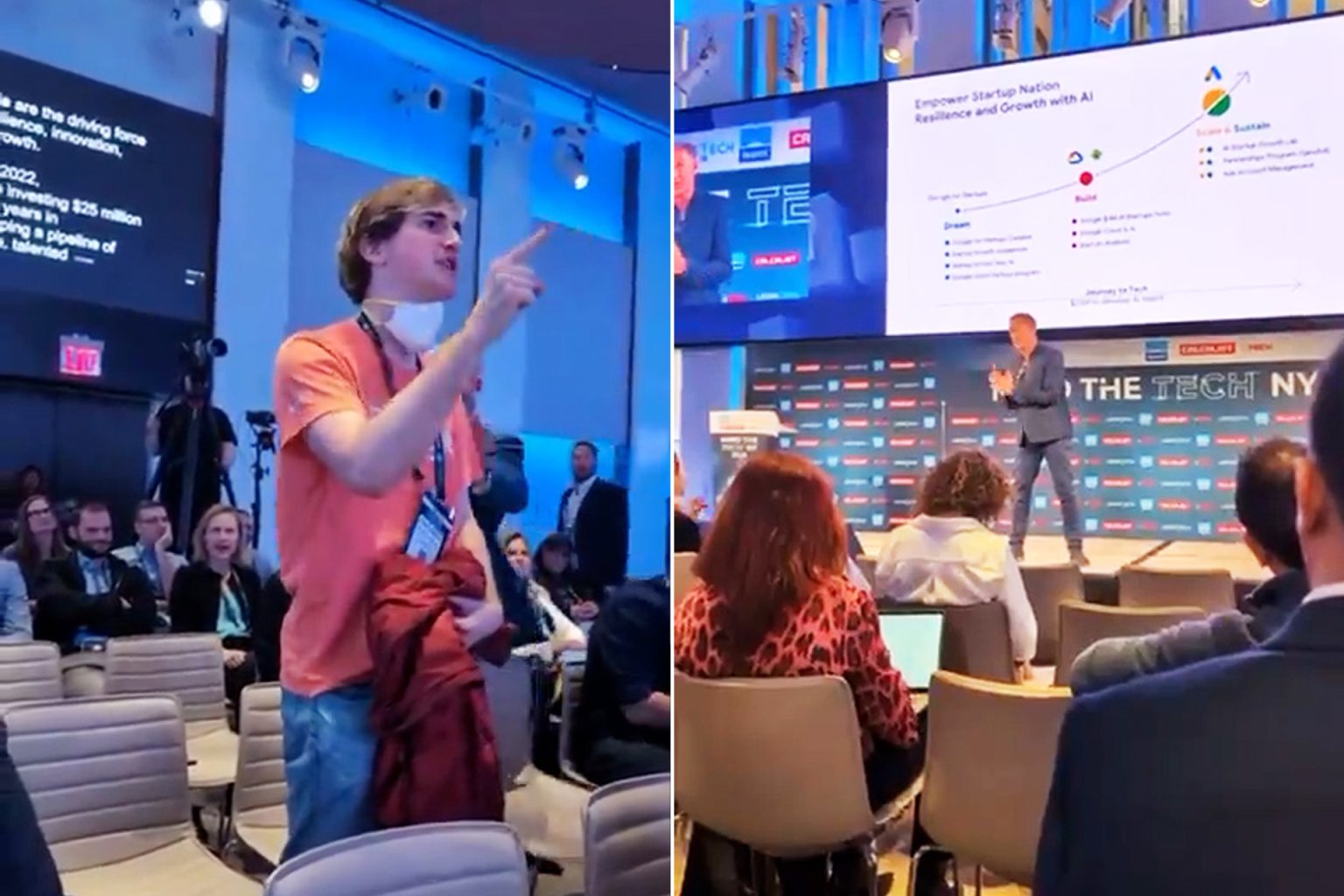 The second disruptor, an anti zionist Jewish organizer with @jvpny, faced intense harassment from conference security and zionist attendees. #notechforapartheid pic.twitter.com/j3BvCkmfUx