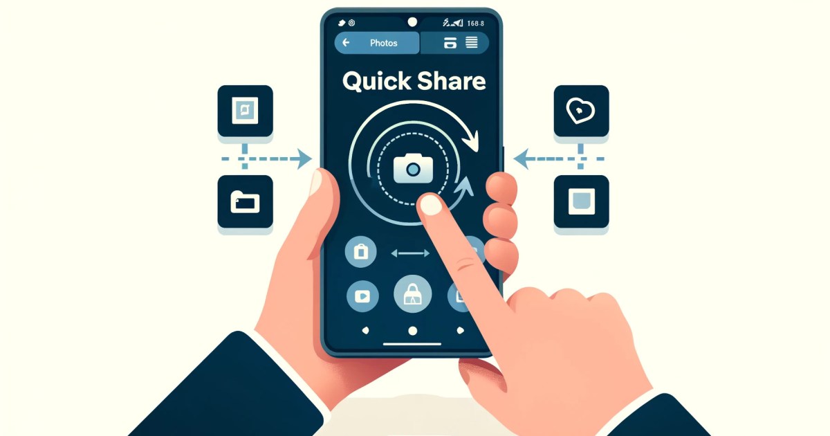 حين ترغب في مشاركة أي نوع من المحتوى مع شخص قريب منك، سواء كان عنوانا في خرائط غوغل أو صورة أو ملفا أو رابط موقع على الإنترنت، اضغط ببساطة على زر المشاركة، ومن القائمة اضغط على “المشاركة السريعة”، وسيبدأ هاتفك في البحث عن الأجهزة القريبة التي يمكنك المشاركة معها.