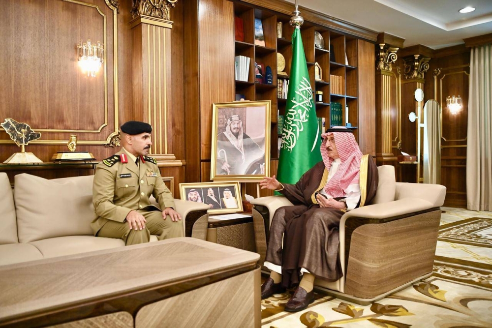 استقبل أمير منطقة جازان الأمير محمد بن ناصر بن عبدالعزيز في مكتبه اليوم، قائد قوة أمن المنشآت بالمنطقة العميد سعود بن عايض العتيبي بمناسبة تعيينه قائدًا للقوة.