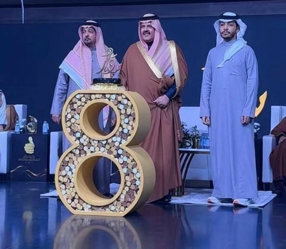 The Emir of Hail, Prince Abdulaziz bin Saad bin Abdulaziz, honored Badr Mousa Al-Rasheedi during the eighth edition of the Prince of Hail Region “Basma” Award ceremony, which was held at Al-Maghwa Park, after he won the “Basma” initiative award.