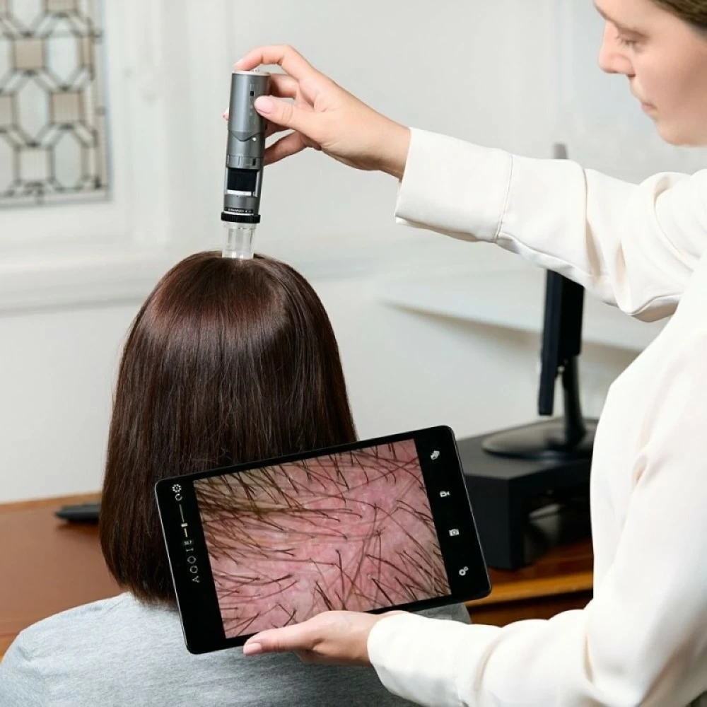 عند ملاحظة تساقط الشعر، ضعف الخصل، القشرة، الحكة أو جفاف الجلد، يصبح فحص فروة الرأس خطوة ضرورية لتحديد السبب الحقيقي، سواء كان مشكلة جلدية، نقص تغذية، أو تأثيرات هرمونية وبيئية.