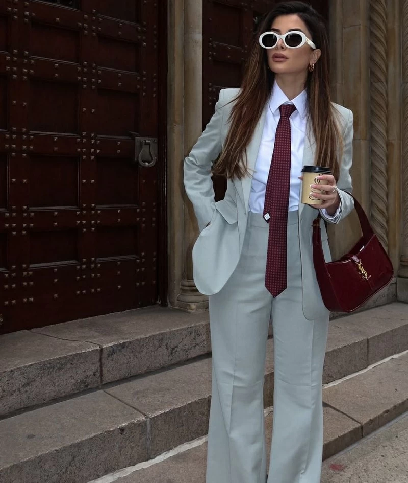 إضافة ربطة العنق كعنصر مفاجئ يرفع الإطلالة، لكن بشرط تخفيف رسميتها، حيث يمكنك اختيار ربطة رفيعة أو بقماش ناعم، وارتداؤها بأسلوب غير مشدود بالكامل، أو مع ياقة مفتوحة قليلًا. لتعطي طابعًا جريئًا وعصريًا بدلًا من أن تكون تقليدية.