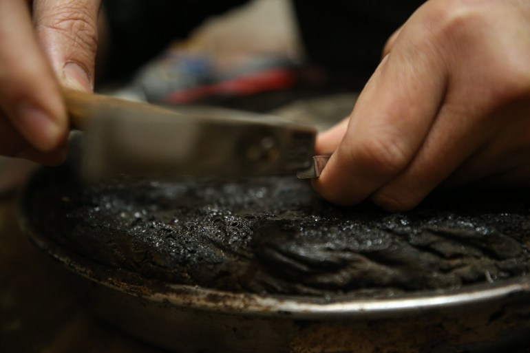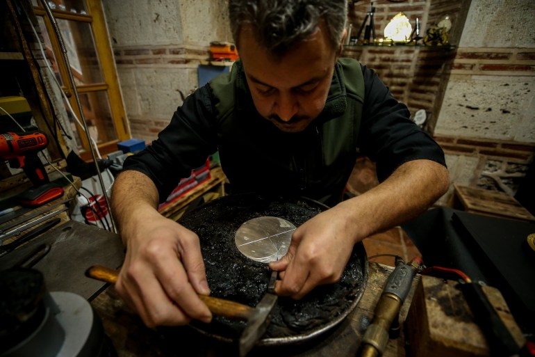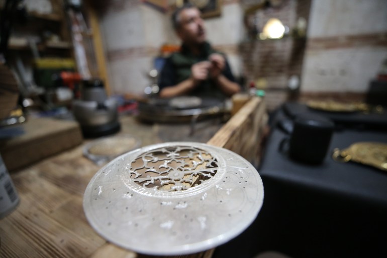 وأضاف أنه تعلم العديد من مهارات فن النحت ومعالجة النحاس على يد أحد الحرفيين المشهورين في مدينة شانلي أورفا التركية (جنوب)، حيث عمل قبل انتقاله إلى بورصة.
