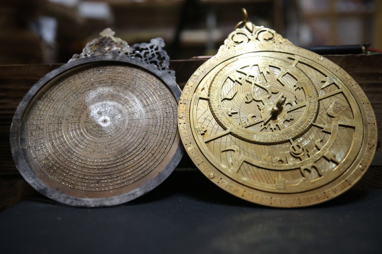 وتابع: “يتم نقش ونحت الخطوط والكتابات على آلة الإسطرلاب. بعد ذلك نقوم بالعمل على الأجزاء التي نسميها العنكبوت، كما يتم أيضا إفراغ بعض الأجزاء بمنشار قص. أفعل كل ذلك في هذه الورشة، بتقنيات قديمة”.