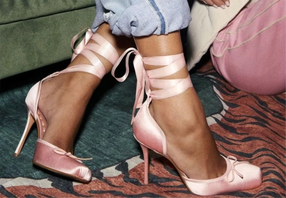 الاستيحاء جاء من الحذاء المسطح الذي ترتديه راقصات الباليه، بتفاصيله الدقيقة مثل الأربطة الرفيعة التي تلتف حول الكاحل، والانحناءة الناعمة عند مقدمة القدم، والخفة التي توحي بالتحليق. لكن في نسخة الكعب العالي، تحولت هذه الخفة إلى مفارقة لافتة؛ فالحذاء الذي صُمم أساسًا لمرونة الحركة والانسيابية، أُعيد تشكيله على قاعدة مرتفعة تعزز الطول وتفرض حضورًا أقوى. هذه الازدواجية بين الرقة والقوة هي ما منح التصميم جاذبيته وأثار الجدل حوله.