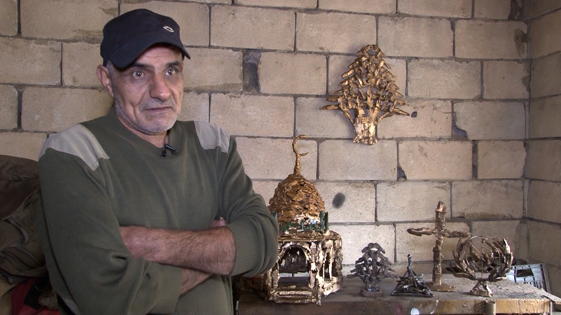 يروي اللبناني محمد نصيف (57 عاما) من بلدة شبعا الحدودية مع إسرائيل رحلة تحوله المهني من “مندوب سياحي” إلى “فنان” اكتشف موهبته بتحويل شظايا ومخلفات الحرب بين لبنان وإسرائيل منذ عام 1973 إلى تحف فنية على شكل مجسمات لأشجار وشعارات بصرية.