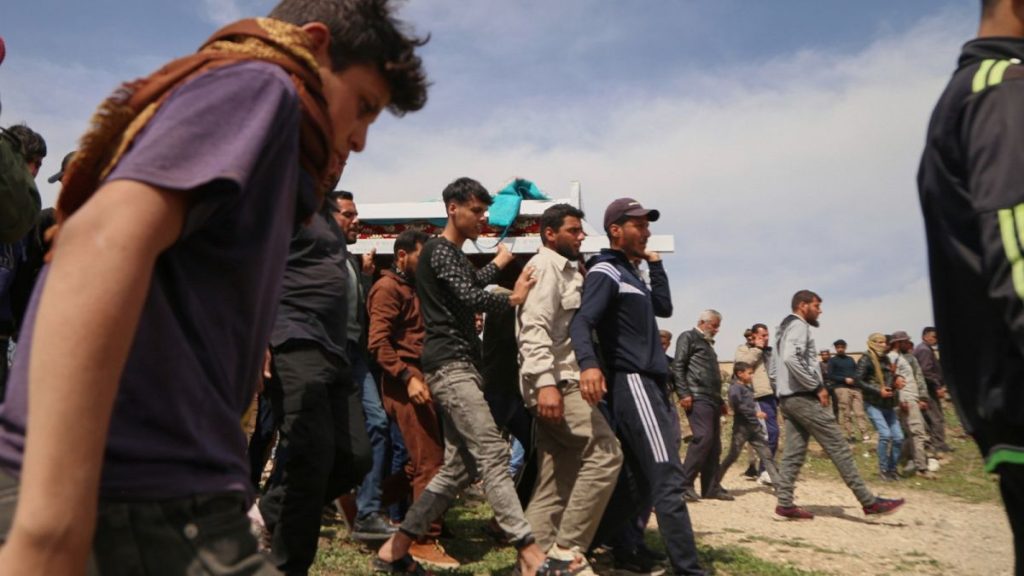 في ظل هذا التصعيد، شيع آلاف السوريين، الخميس، ضحايا الغارات الإسرائيلية الأخير على محافظة درعا في مدينة نوى بريف المحافظة.