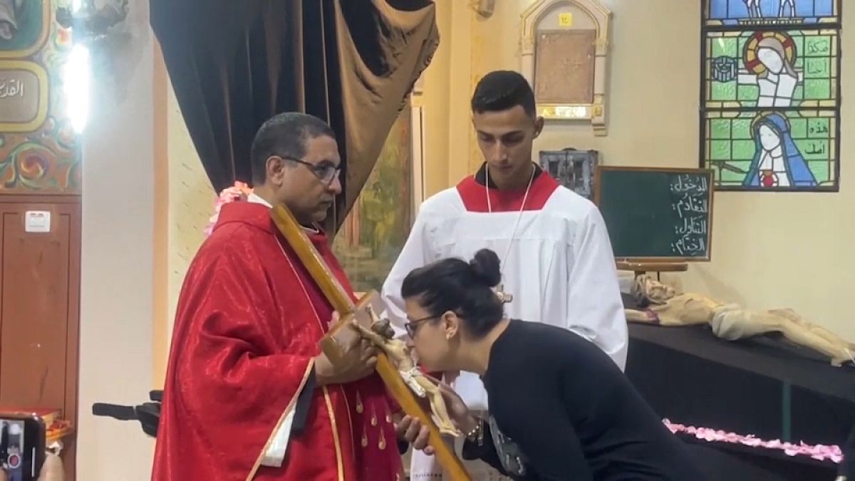 رغم أجواء الخوف والحزن، تجمع عشرات المسيحيين في كنيسة العائلة المقدسة في مدينة غزة لحضور قداس الجمعة العظيمة.