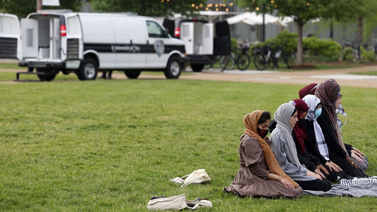 تداول رواد مواقع التواصل الاجتماعي مقطع فيديو يظهر طلاب جامعة ولاية أوهايو وهم يتضامنون مع زملائهم المسلمين من خلال تكوين سلسلة بشرية لحمايتهم أثناء أداء الصلاة، وذلك في خضم محاولة الشرطة فض اعتصام الطلبة في ساحة الجامعة.