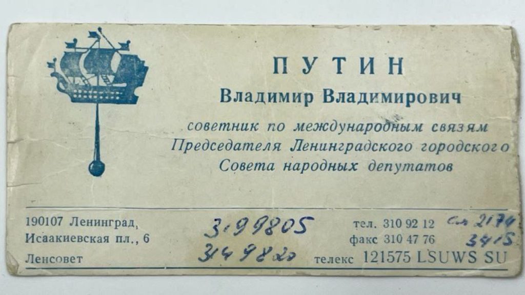 وكتب على البطاقة: “فلاديمير فلاديميروفيتش بوتين. مستشار العلاقات الدولية لرئيس مجلس النواب في مدينة لينينغراد”.