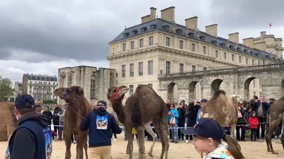 أقيم موكب للإبل خارج قصر شاتو دي فينسين في فرنسا يوم السبت.