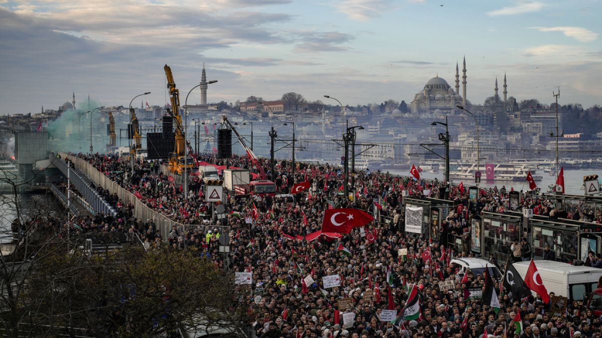 شارك عشرات الآلاف في مسيرة بمدينة إسطنبول، فجر الاثنين، تضامناً مع غزة وتنديداً بالحرب الإسرائيلية عليها، وإحياءً لذكرى شهداء الجيش التركي.