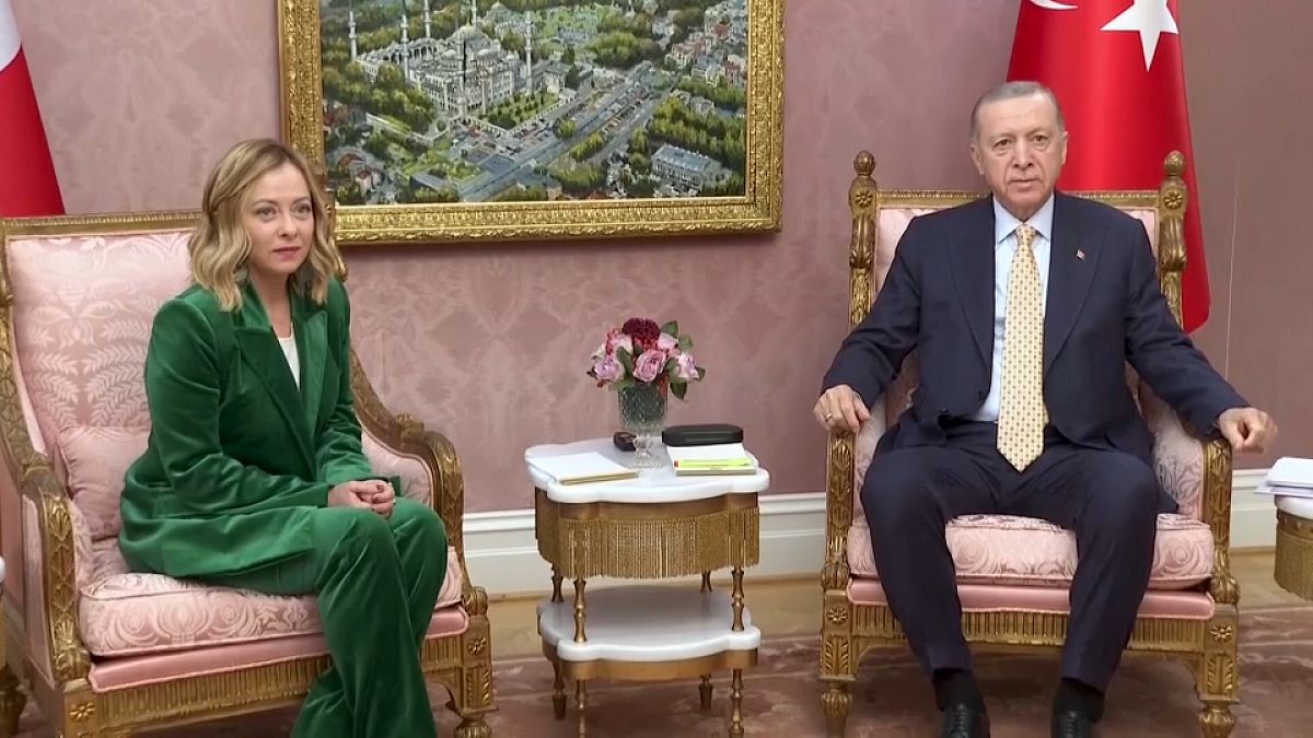 وأجرت ميلوني محادثات مع الرئيس التركي في المقر الرئاسي بإسطنبول، وكان الاجتماع مغلقاً أمام الصحافة ولم يتم الإدلاء بأي تصريح فوري بعده.
