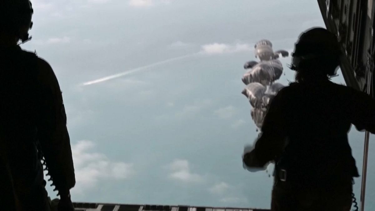 أظهر مقطع فيديو للجيش الأمريكي أفرادًا من القوات الجوية وطائرات خلال مشاركتها في عمليات إسقاط المساعدات الجوية يوم الأربعاء.