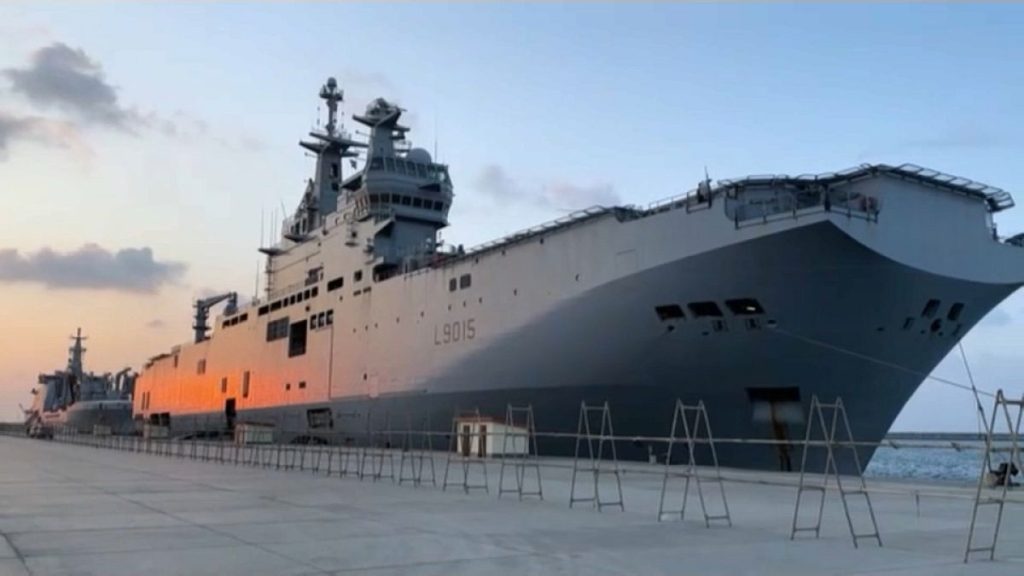 يبلغ طول حاملة الطائرات “ديكسمود” الراسية في المرفأ المصري منذ 27 تشرين الثاني/ نوفمبر 199 مترًا وعرضها 32 مترًا.