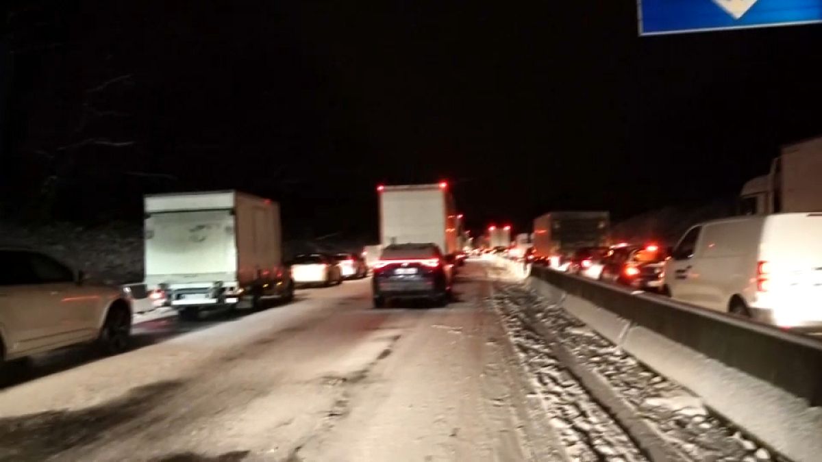 وتسببت العاصفة غير المتوقعة في عرقلة مئات من سائقي السيارات. وحوالي 400 مركبة بقيت عالقة على الطريق السريع حتى صباح الثلاثاء.