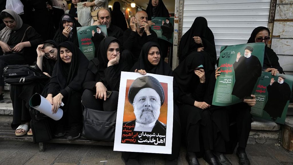 تجمع مئات الأشخاص في وسط طهران، الاثنين، حدادا على وفاة الرئيس الإيراني إبراهيم رئيسي.