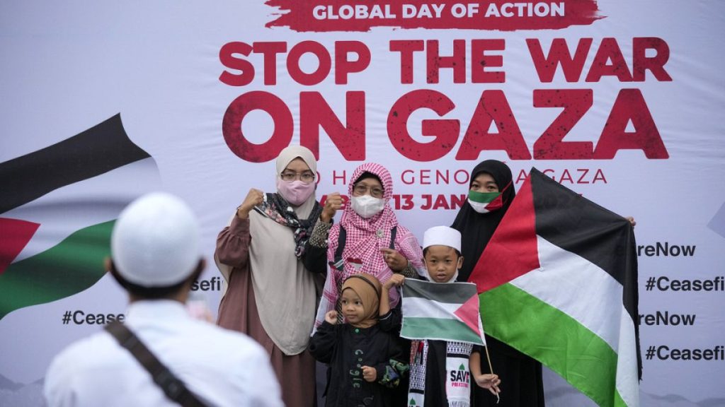 ولوحوا بالأعلام الإندونيسية والفلسطينية، وحملوا لافتات كتب عليها “قاطعوا إسرائيل” و”وقف إطلاق النار الآن”.