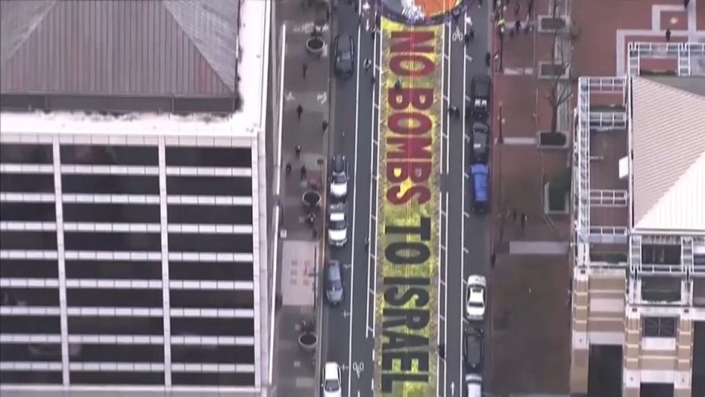 وردد المتظاهرون هتافات يدعون من خلالها إلى “إنصاف غزة”، ومتهمين بايدن بالكذب، كما دعوا إلى وقف لإطلاق النار في غزة، قائلين :”لا نريد حربا قذرة”.